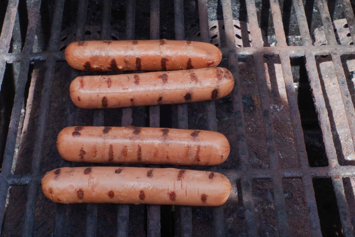 The great thing about this recipe is that the hot dogs/turkey dogs can also be baked or broiled in the oven or boiled on the stove top any time of the year.