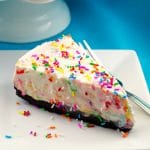 - Add extra sprinkles to the top of the cheesecake, as desired. Serve.
