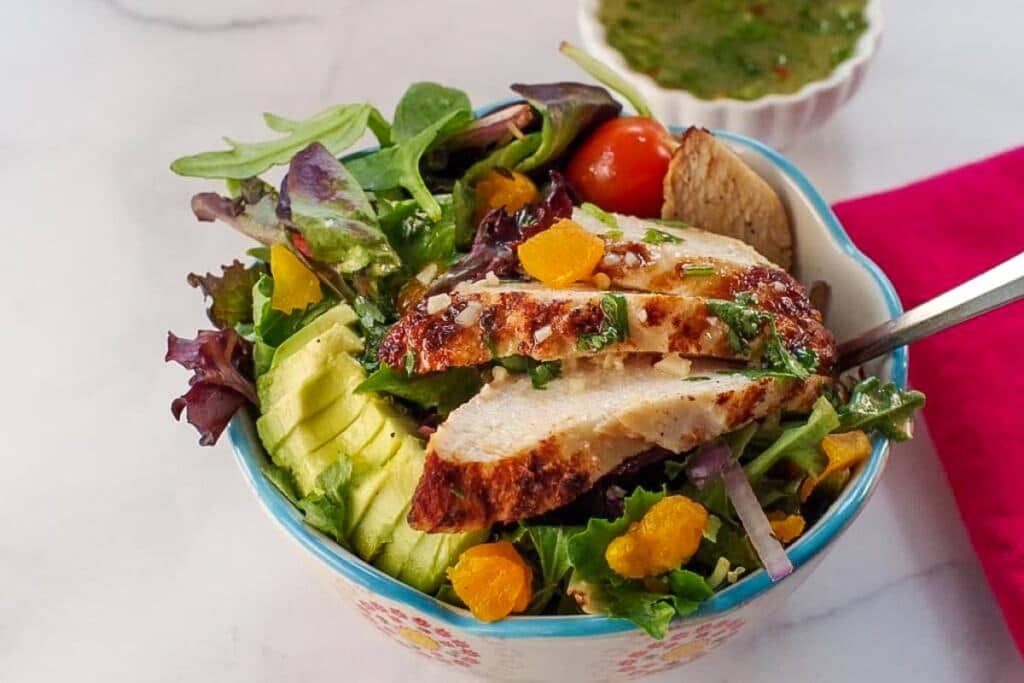 This Chicken Grilled Mango Salad (with avocado)makes a great busy weeknight dinner, the perfect lunch, or if you have leftover chicken breasts to use up.