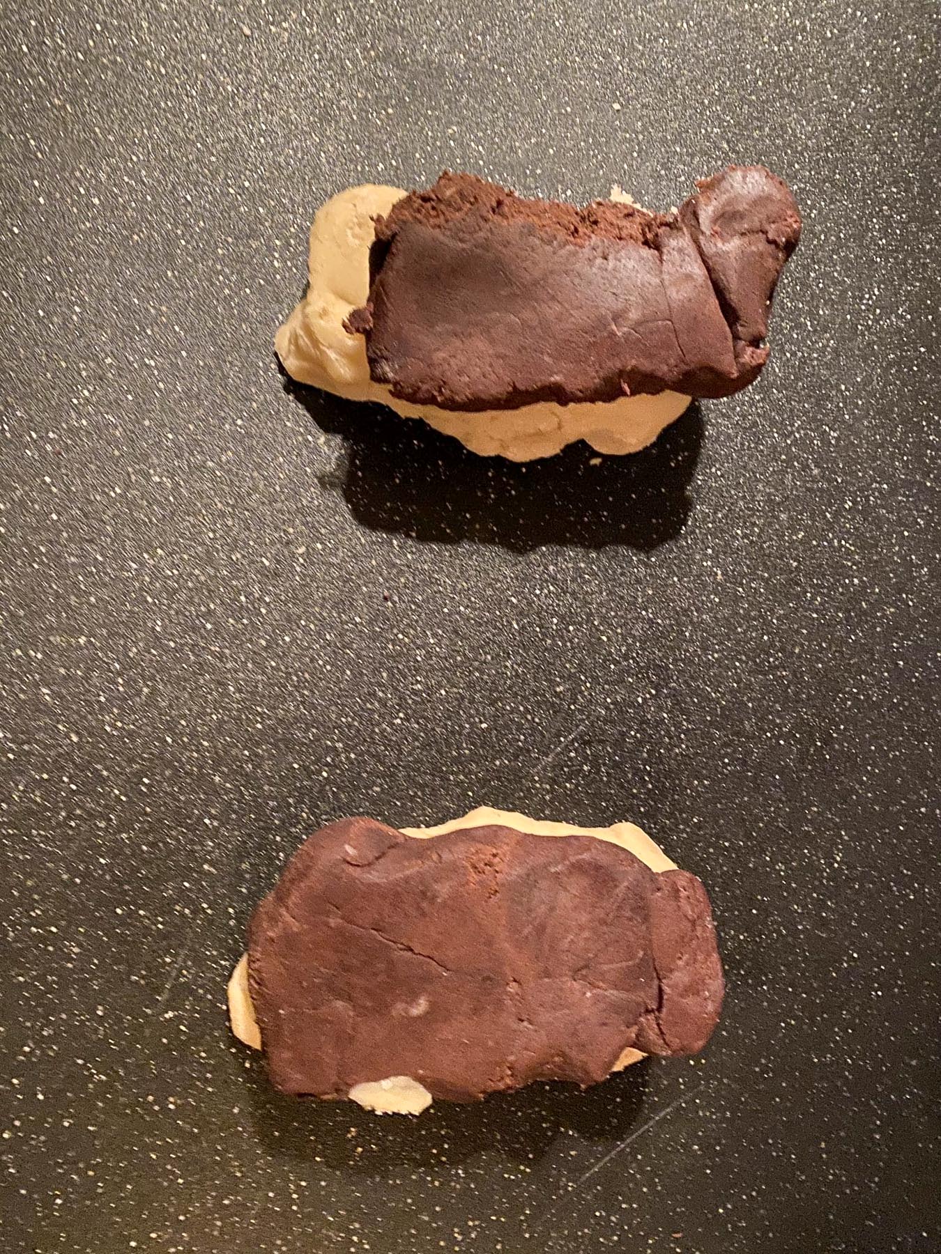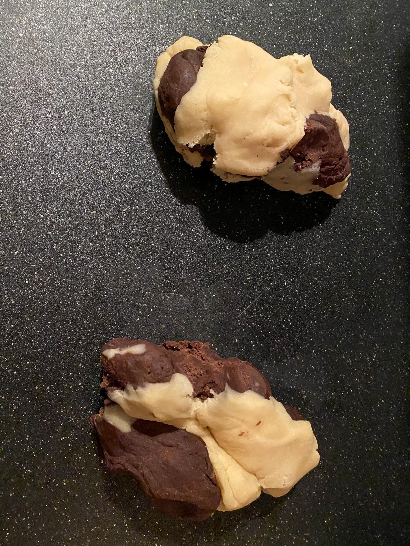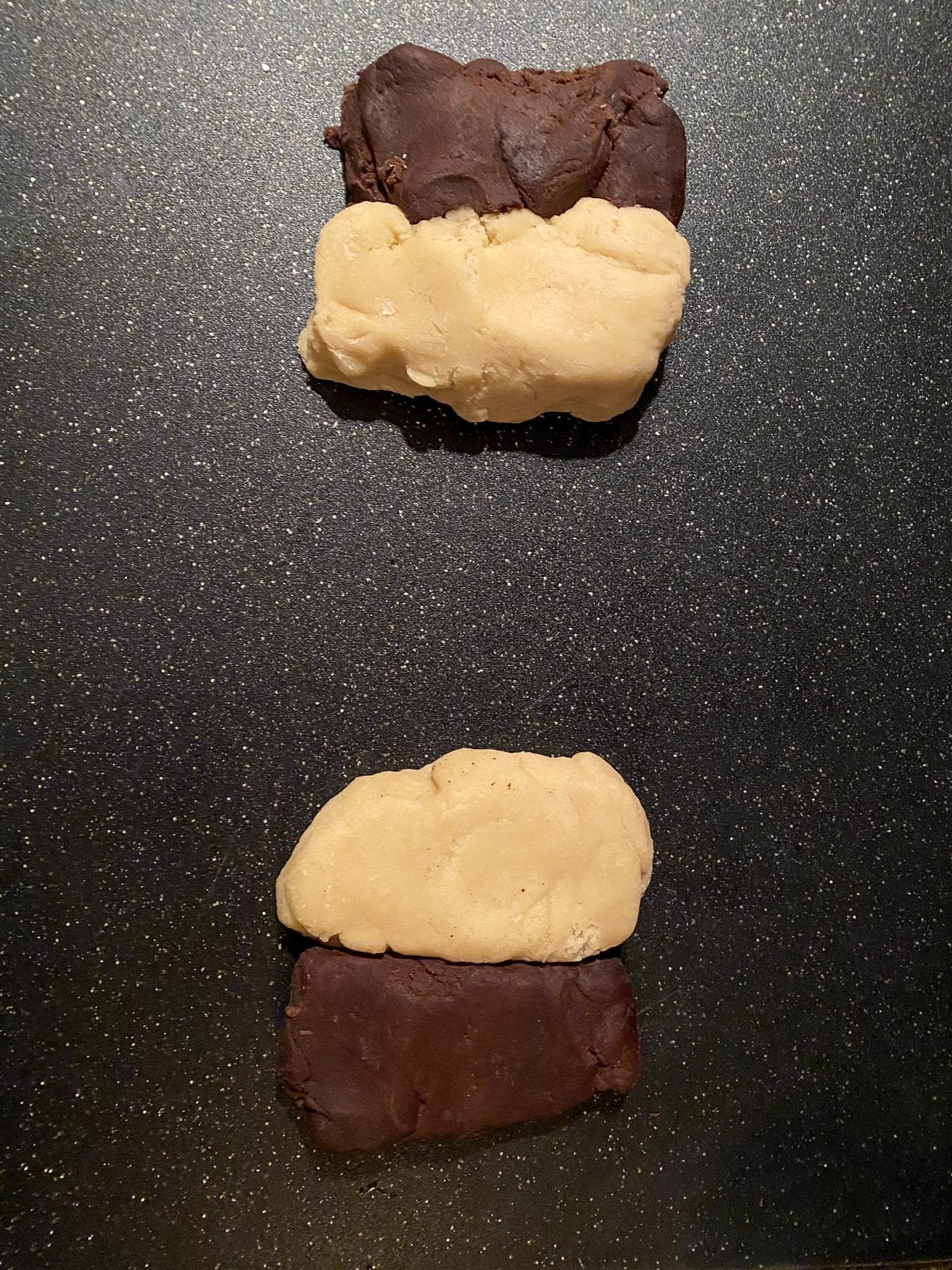 - Step 2: Then, flip each section of chocolate and vanilla dough on top of each other, keeping the 2 sections separated.