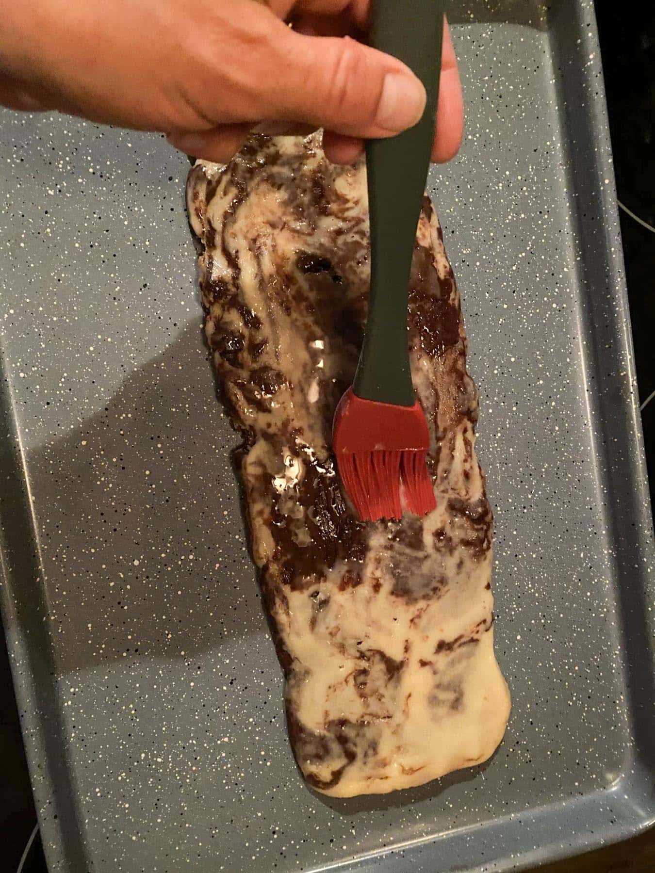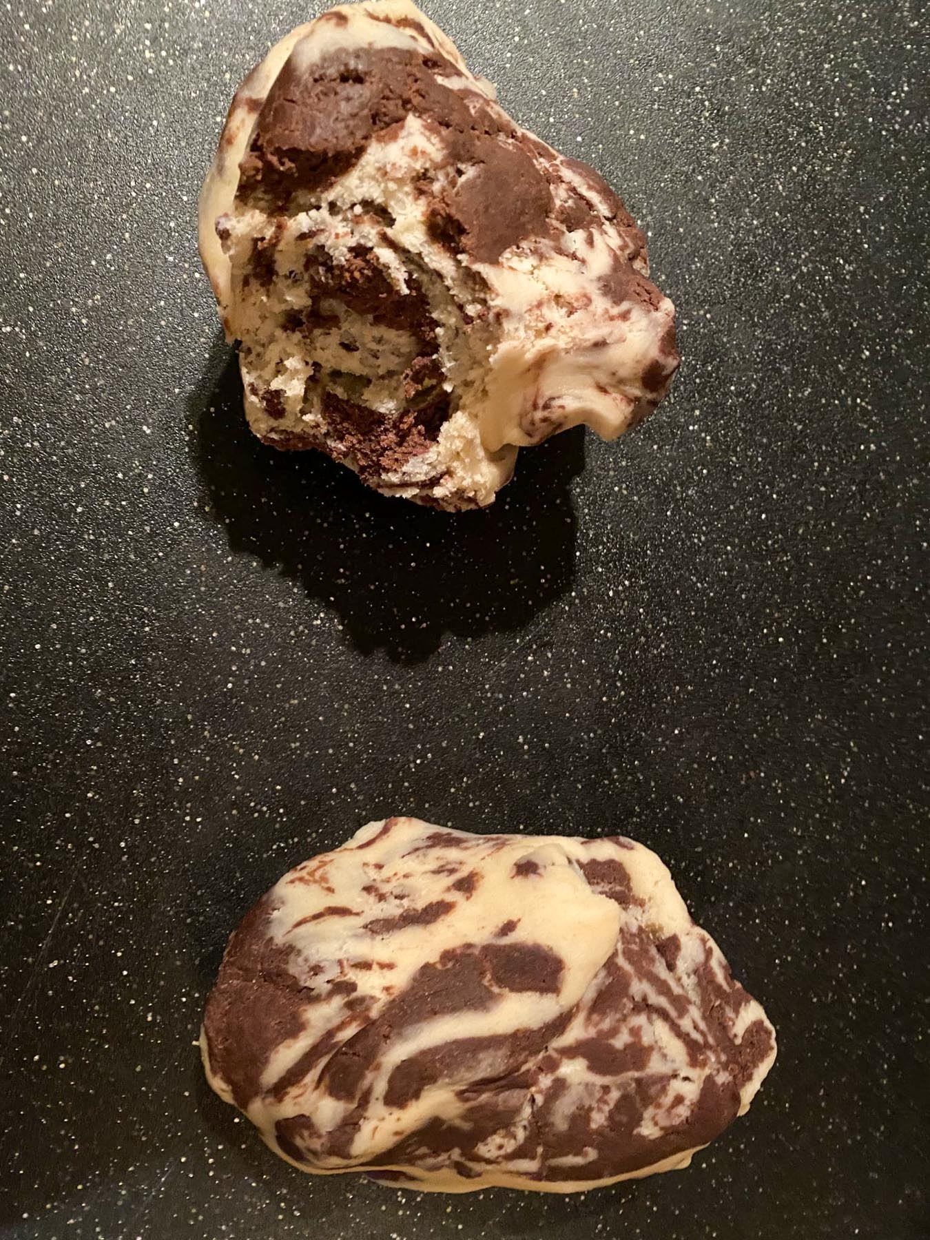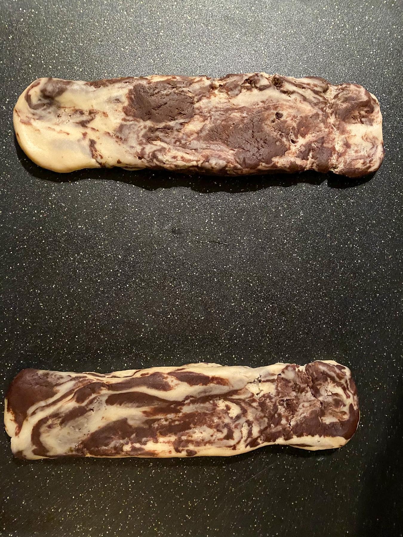 - Step 2: Then, flip each section of chocolate and vanilla dough on top of each other, keeping the 2 sections separated.