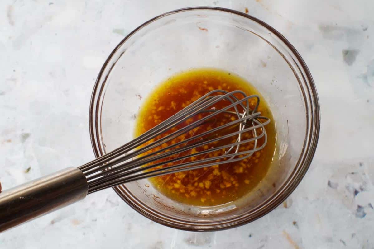 - Step 2: In a separate bowl, whisk together olive oil, lime juice, red wine vinegar, sugar, salt, pepper, and garlic.