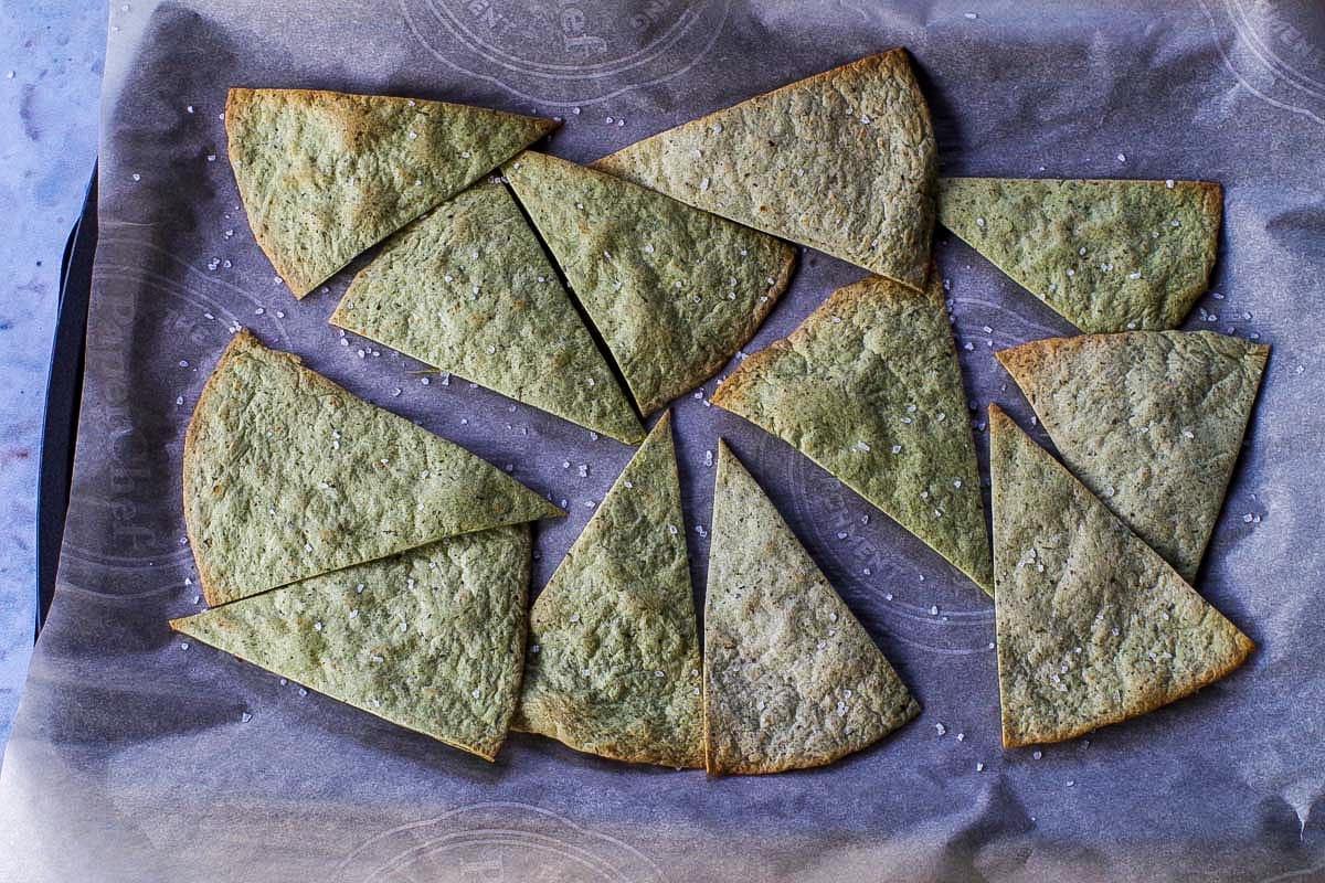 - Lay tortillas on baking sheet, in a single layer, spinkle with salt and bake 6-8 minutes or until lightly browned.kosher or sea salt