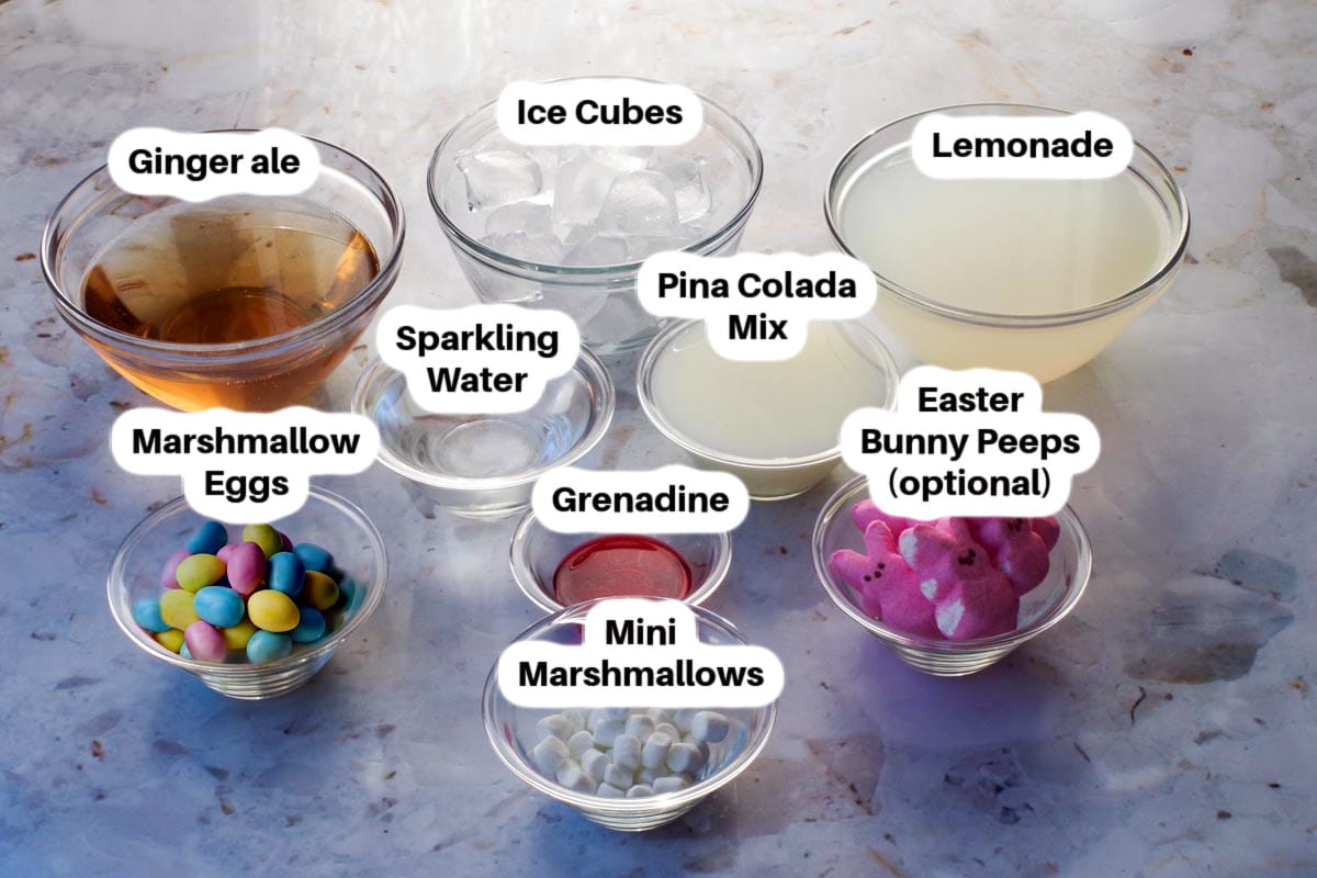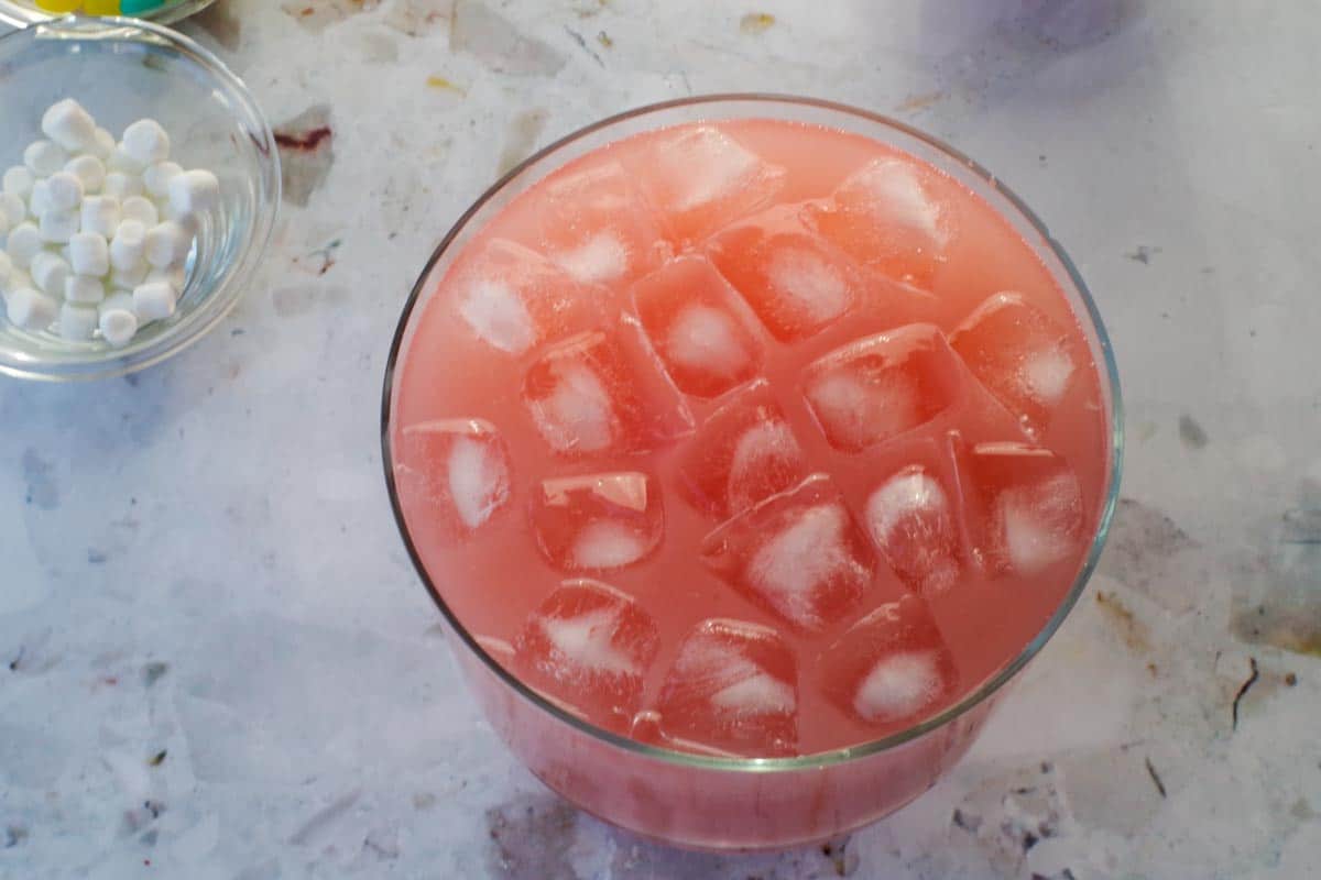 - Step 4: Add colored marshmallow eggs and mini marshmallows, colored marshmallows, or just prior to serving. *I like it less sweet, so I used more sparkling water and a little less grenadine in this final photo.