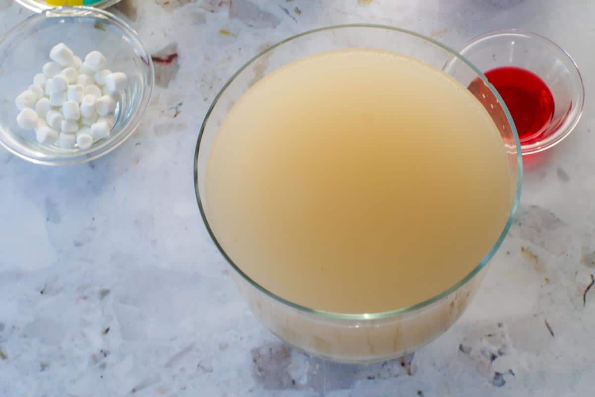 Make sure you add the marshmallow eggs and the mini marshmallows just before serving this Easter party punch! The color will eventually come off the marshmallow eggs the longer they're in contact with liquid (within an hour).