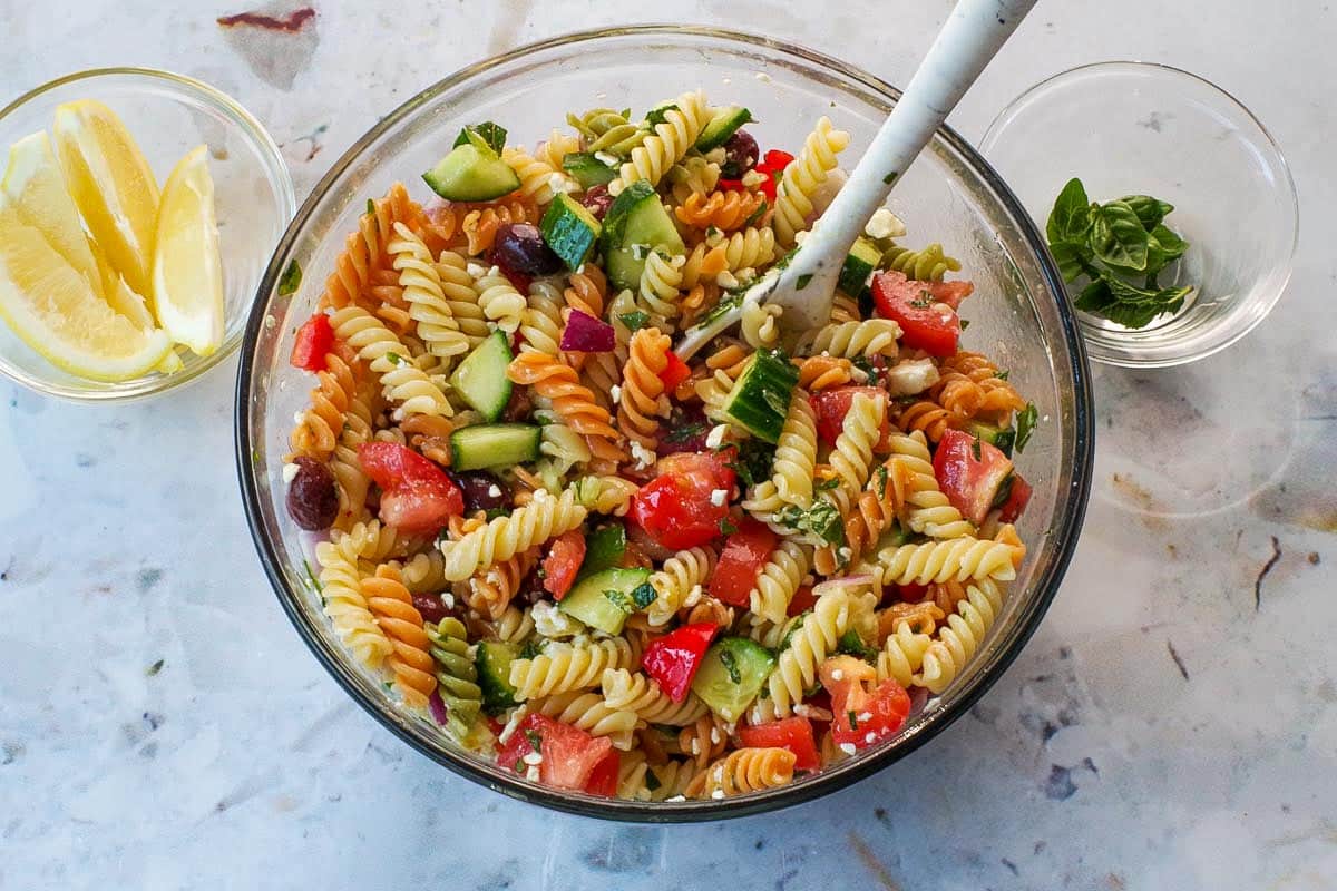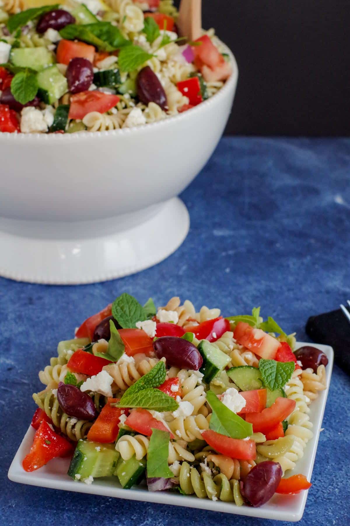 So, if you are looking for a pasta salad for a potluck, this Greek Pasta Salad is the perfect one!