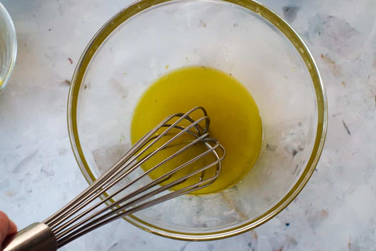 - Step 2: Whisk oil, lemon juice and garlic together in a separate bowl.