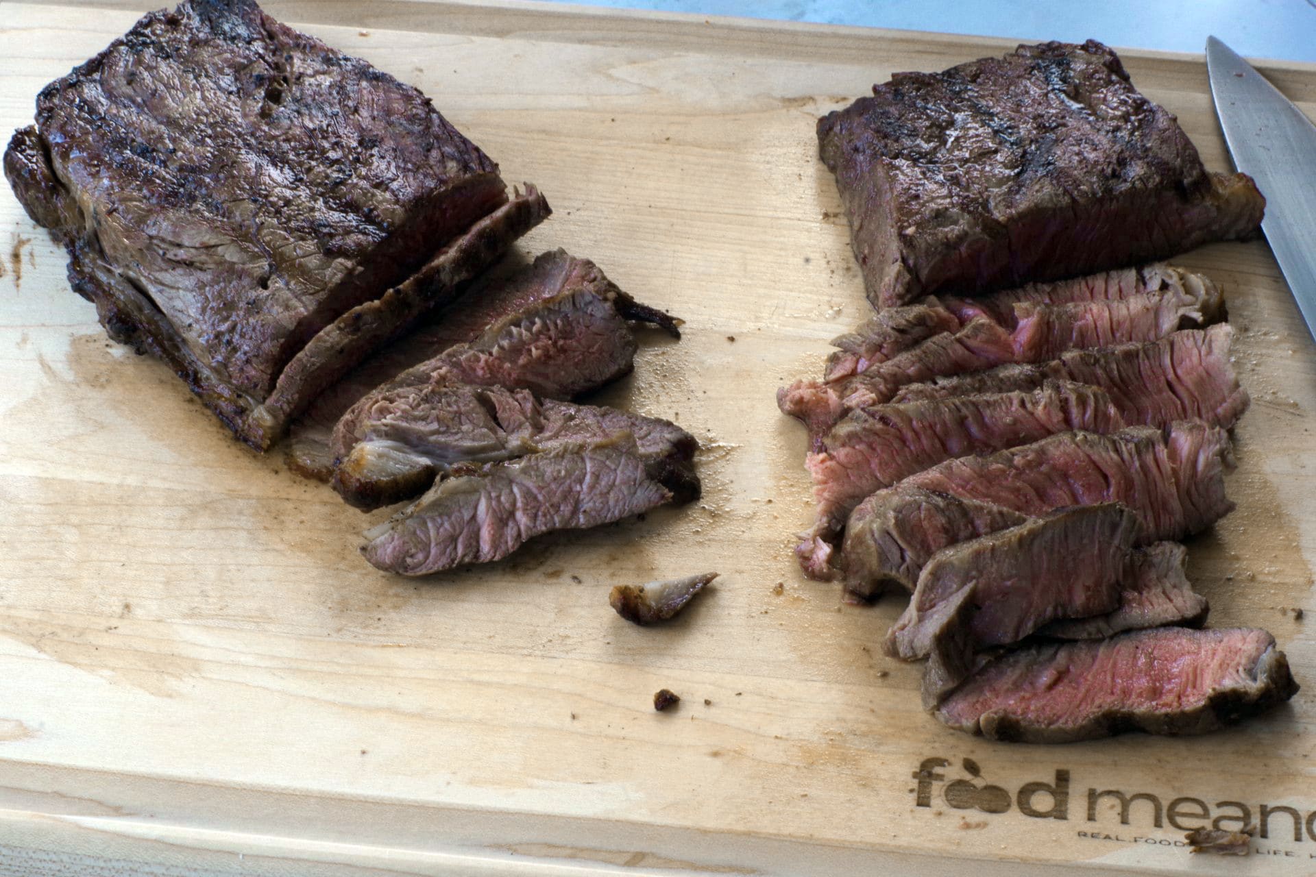 - Step 3: Remove the steak from the grill and slice steak into thin slices. *Cut against the grain for best results! (See Video below)