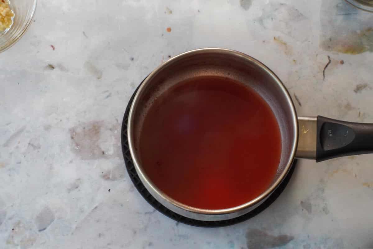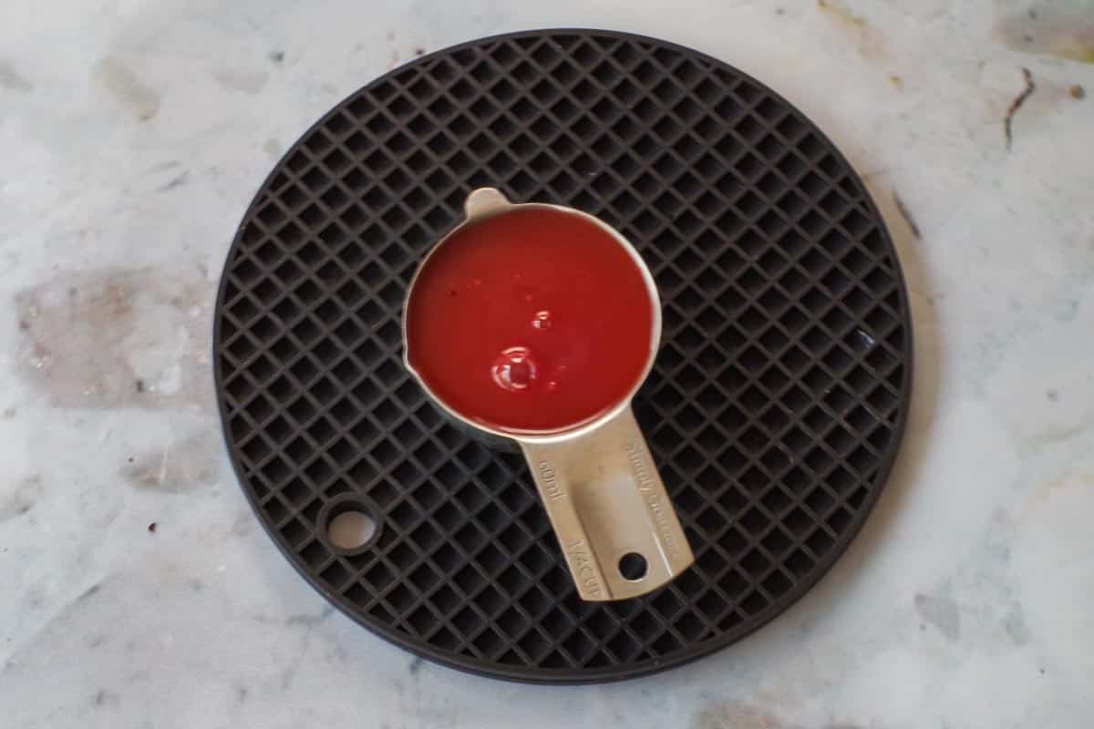 - Cook until the Clamato juice is reduced to ¼ cup. *This happens quickly (within about 5 minutes), so keep an eye on it.*I like to pour it into a measuring cup to be sure I have the right amount.