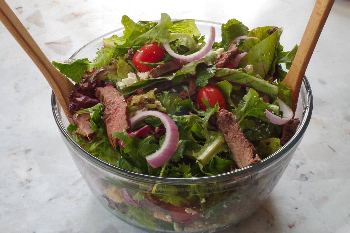 This healthy steak salad recipe is 6 servings. But you can double or triple the recipe by simply clicking on the serving number and selecting the number of servings you'd like. The ingredient quantities will automatically adjust.
