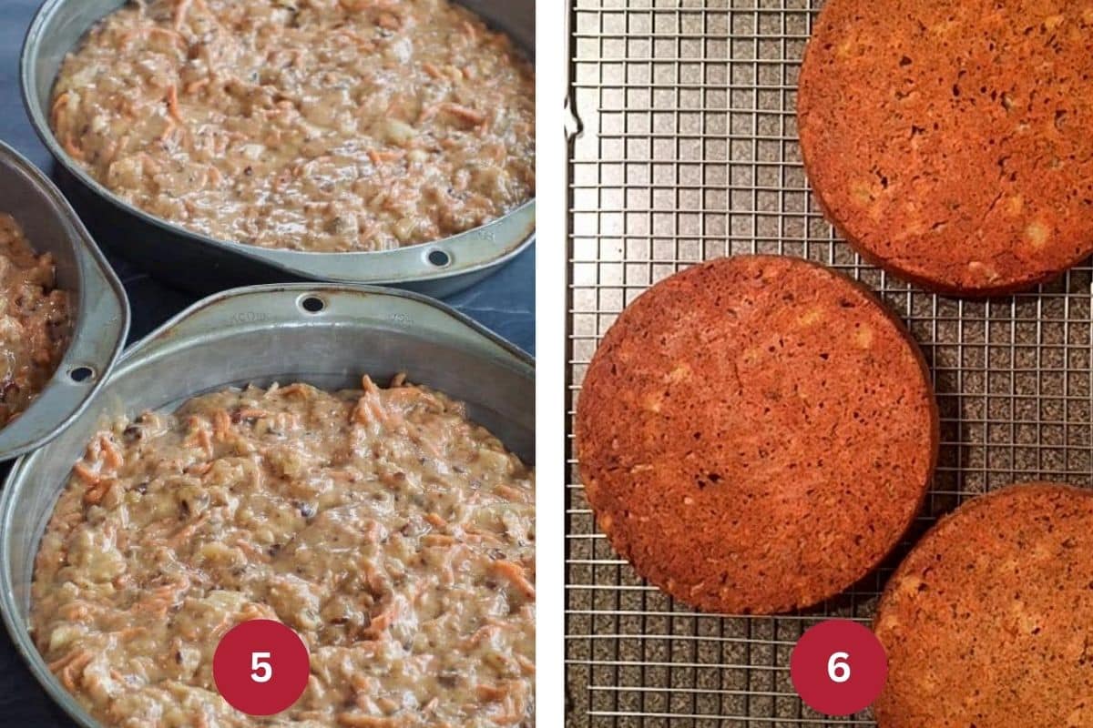 BAKE THE CAKE (STEP 2): Divide the batter among the pans and bake for 30- 35 minutes or until cake tester comes out clean (IMAGE 5). Let cool for 10 minutes before gently removing from the pan. Cool on a wire rack for 10 minutes (IMAGE 6).