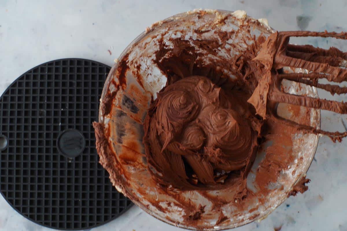 - Add vanilla extract and the powdered sugar and cocoa a little at a time until blended. *If you try to add it all at once it will end up all over your kitchen counter.