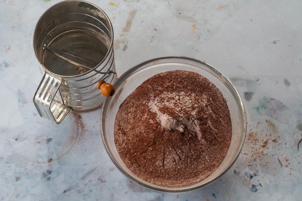 Step 3: Sift all dry ingredients together, except granulated sugar.