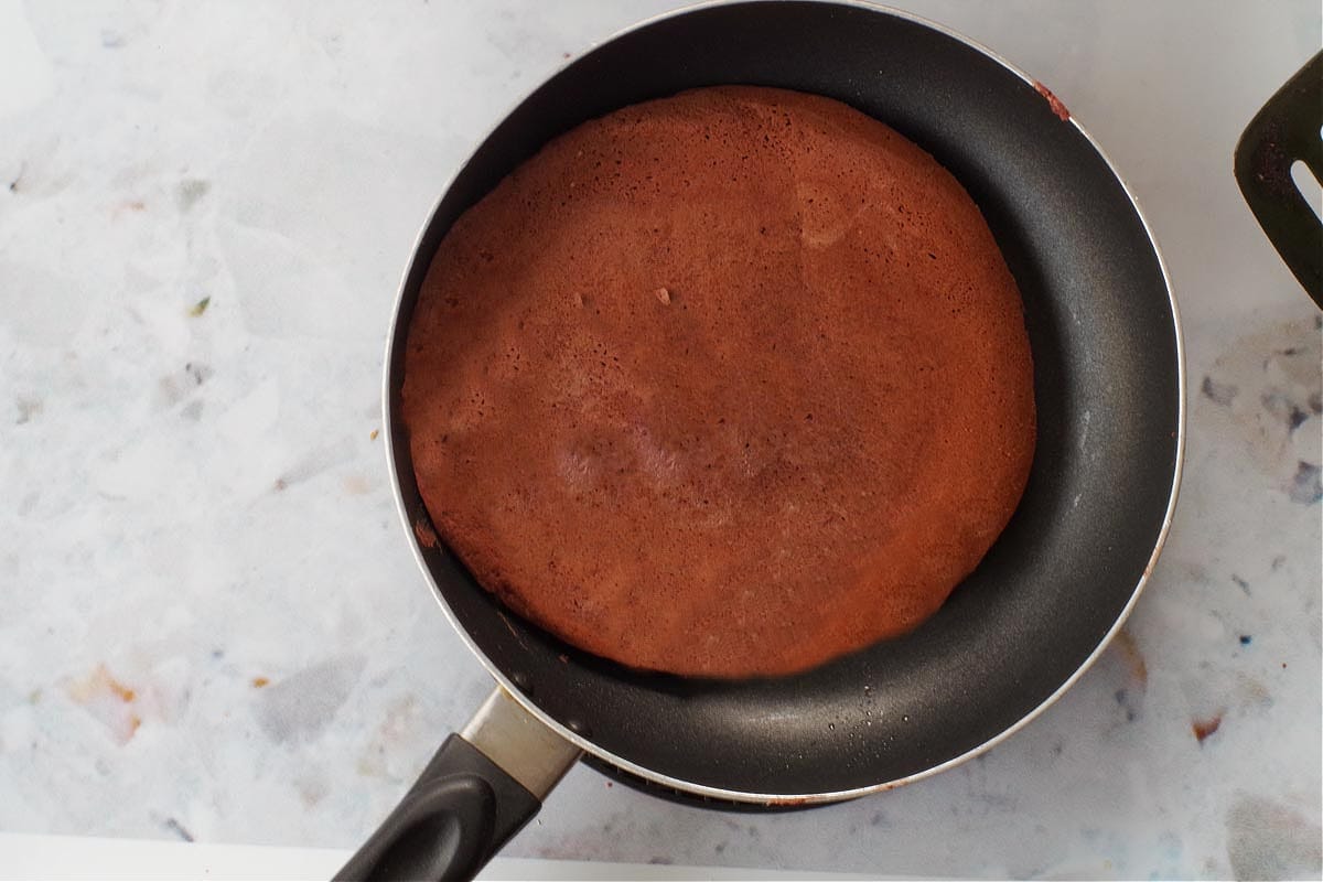 Step 7: Cook over medium heat, flipping when bubbles start to break on the surface of the pancake and the edges start to brown