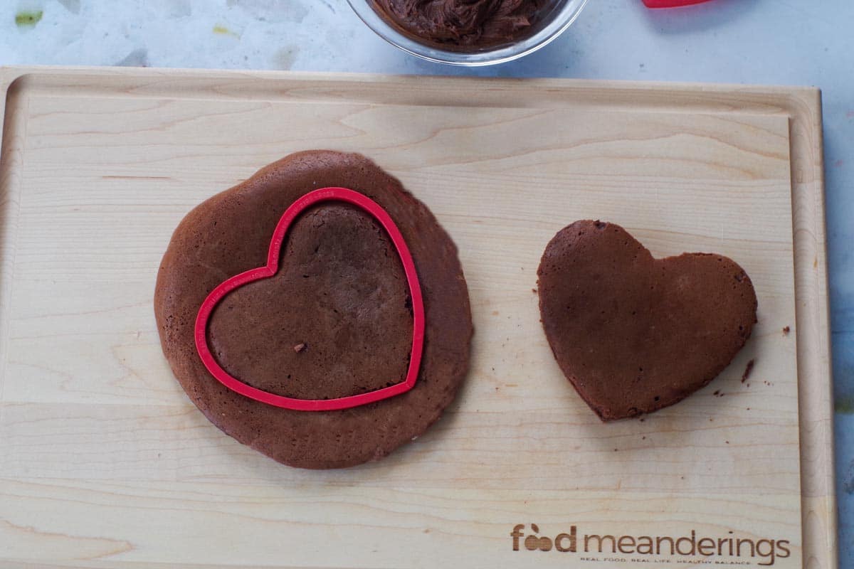 Step 9: Cut into heart shapes with a large heart-shaped cookie cutter, if desired. *If you cut them into shapes, you can keep the leftover pancake to eat (it still tastes great! )