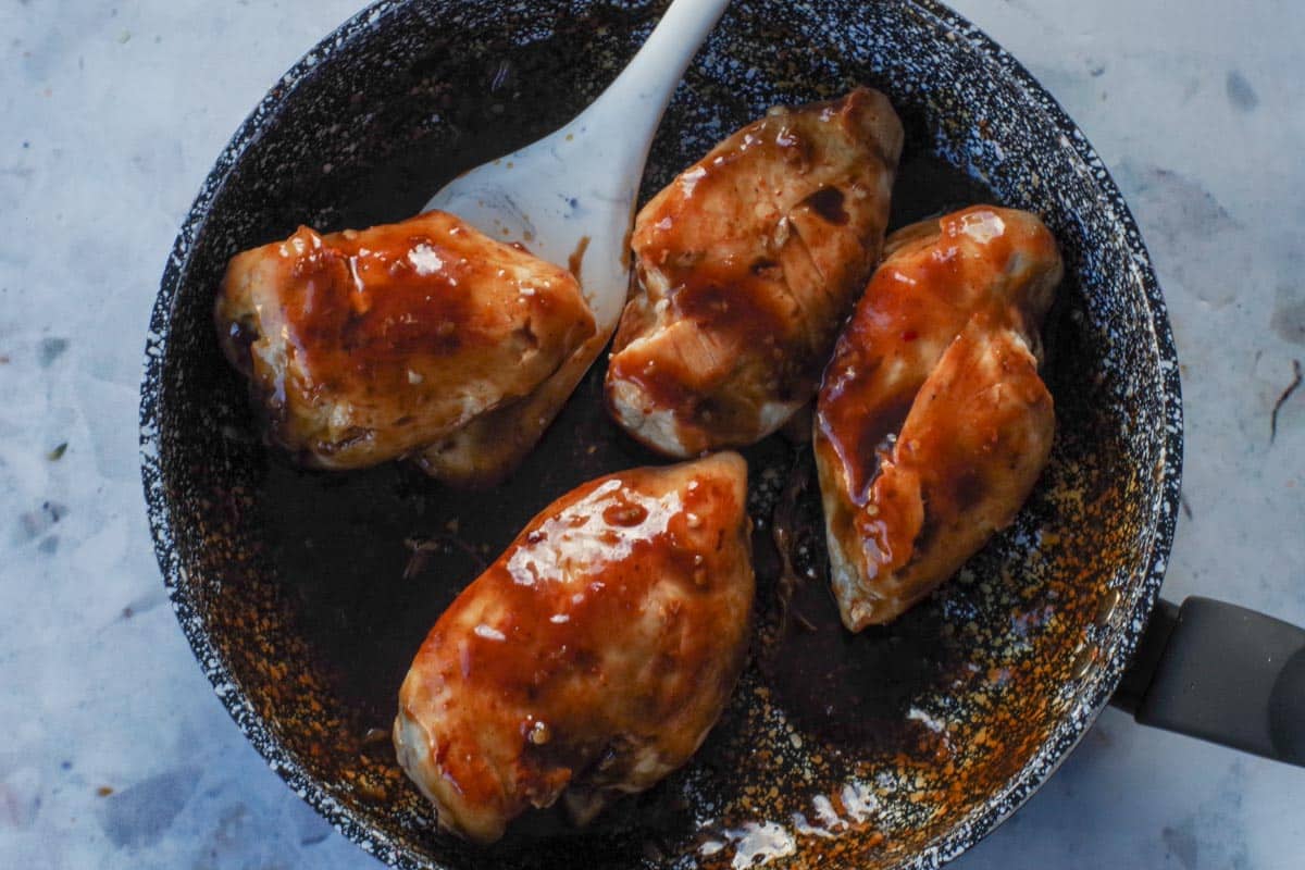 Yes, but make sure to fully thaw the chicken breasts before cooking to ensure even cooking and proper absorption of the sauce