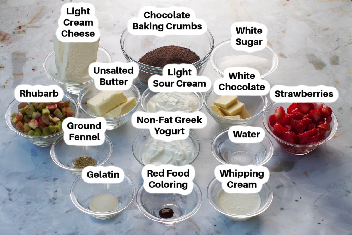 Here are the strawberry rhubarb cheesecake ingredients you'll need: