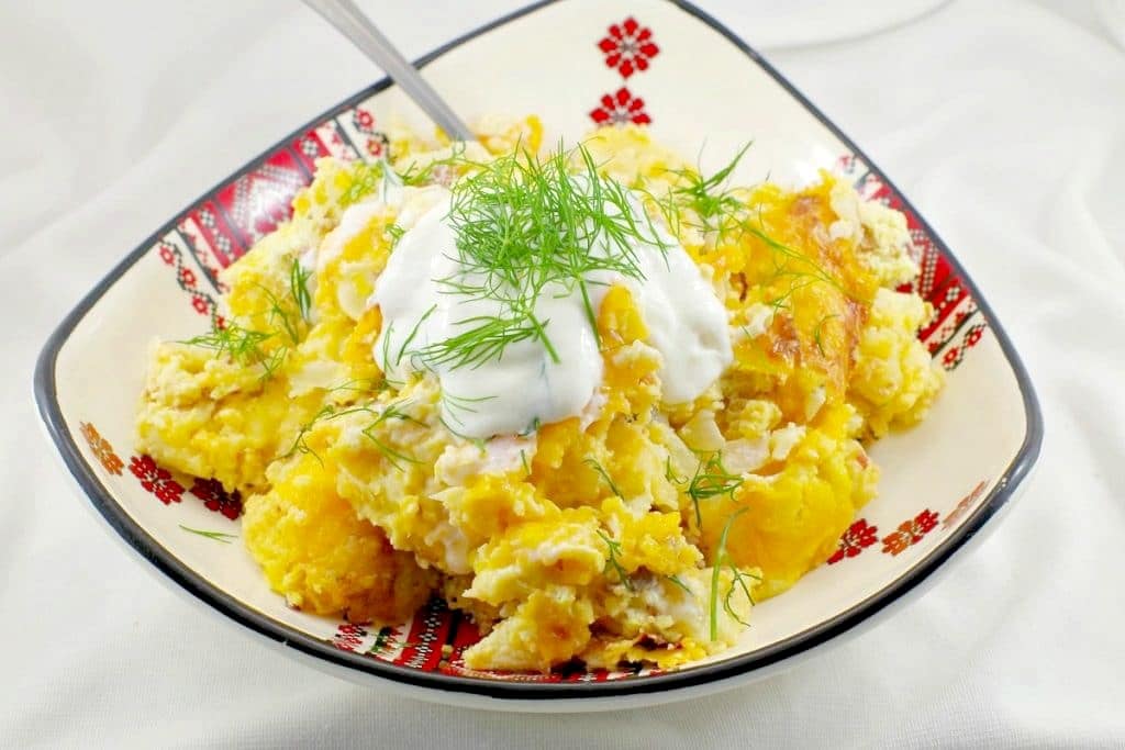 - Step 6: Pour egg mixture over perogies, then gently stir in.