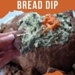 The best part is the creamy spinach dip is served in an edible bread bowl! This Spinach Dip in Pumpernickel bread is especially popular around the holidays and is great for New Year's but makes a great dip for your next gathering or potluck!