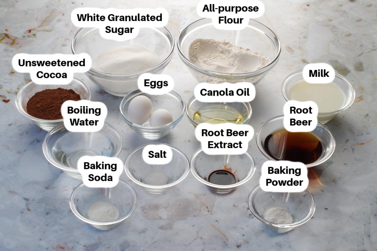 - Unsweetened cocoa. Adding cocoa gives this cake a chocolate flavor that boosts the root beer flavor.