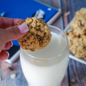 These easy breakfast cereal cookies are popular in late summer or early fall during back-to-school time, but they are delicious any time of year, especially if you have leftover cereal. They are the best cookies for a lunch box dessert, a school snack, or an after-school treat. You could even eat them for breakfast! And they pair perfectly with a tall glass of milk.