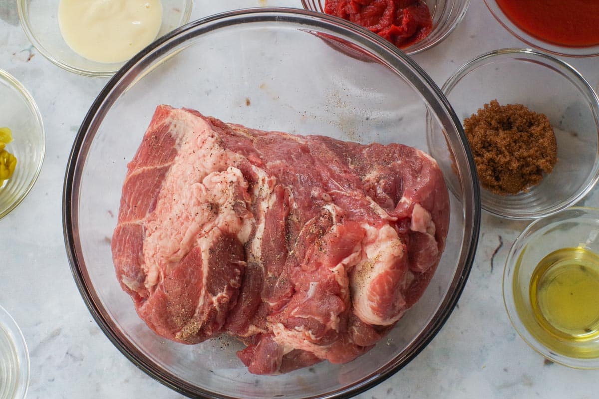 I love that you can prep the pork shoulder in a slow cooker the night before and come home to the delicious aroma of a tasty meal! I add everything to the crockpot the night before, stick it in the fridge, then turn it on before I leave the next morning.