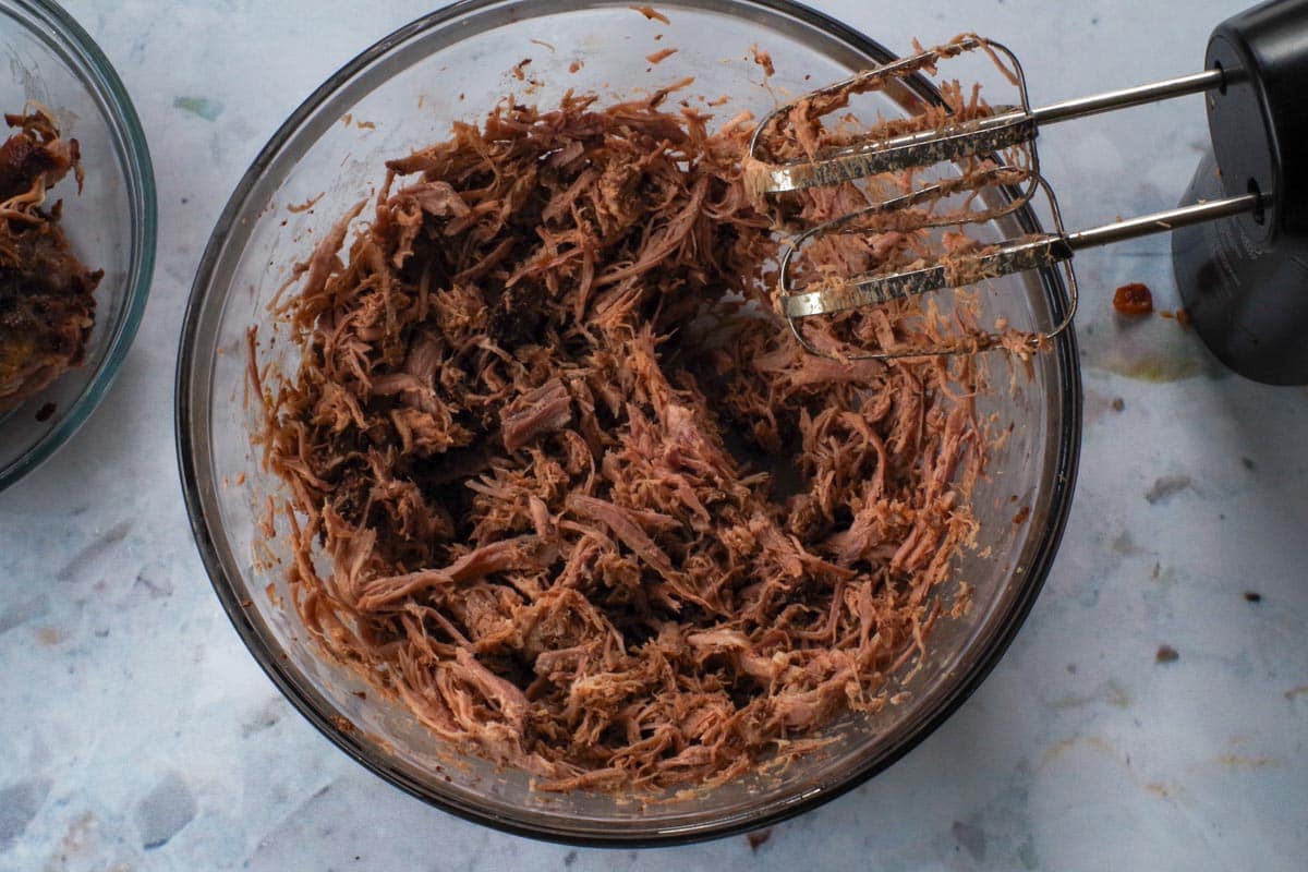 Step 8: Alternatively, you can also shred pork with your stand mixer or hand mixer! It's much faster than doing it with forks, and it comes out perfectly evenly shredded.