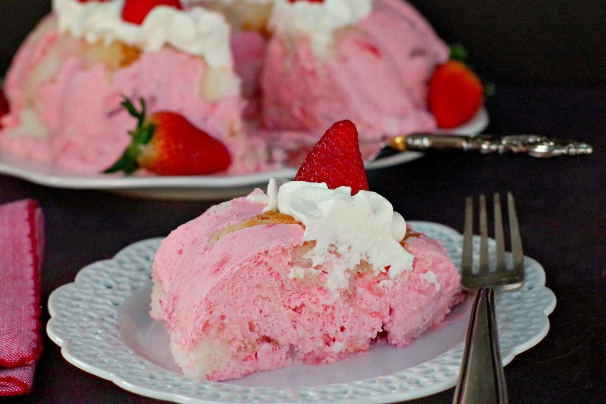 This cake is especially easy to make using store-bought angel food cake, frozen strawberries, whipped cream, and Jello. However, you can use a box mix or homemade angel food cake if you prefer.