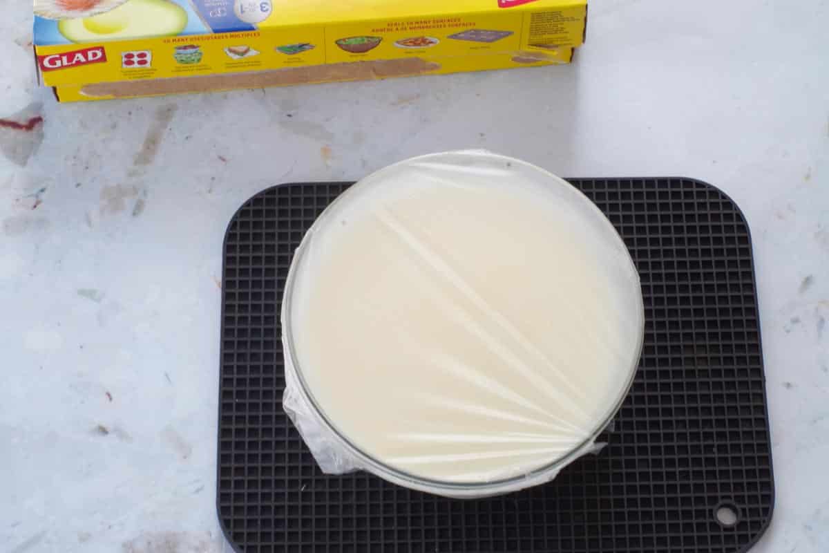 - Cool on the counter, then cover with a piece of plastic wrap (I use glad press n' seal) and let stand in refrigerator for 24 hours.