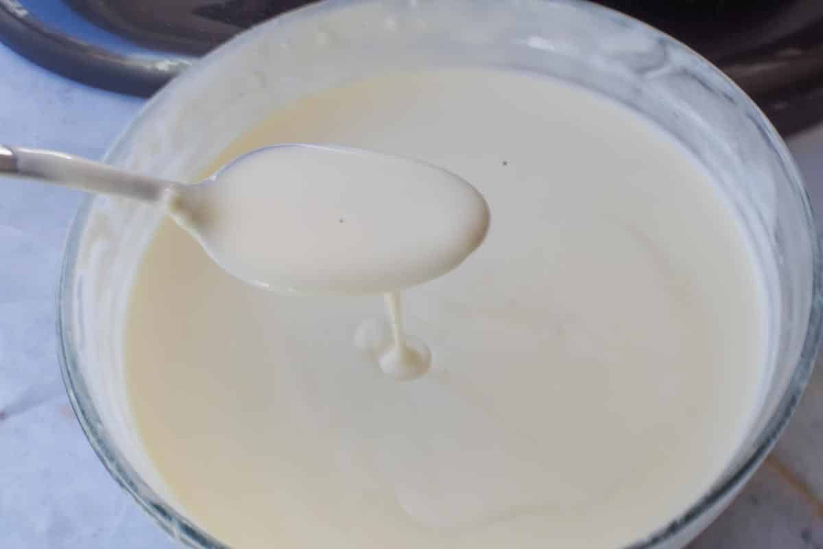 - Step 6:Once the white chocolate ganache is chilled (it will be soft and not solid like regular chocolate ganache). It will be similar to the consistency of gravy.